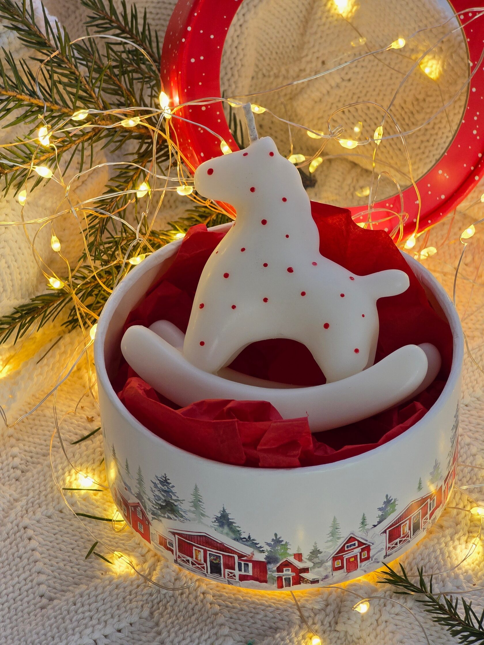 Растительный безопасный воск и образ такой доброй и уютной лошадки делают эту свечу стильным и ценным самостоятельным подарком, милым дополнением к большому подарку или украшением праздничного стола.