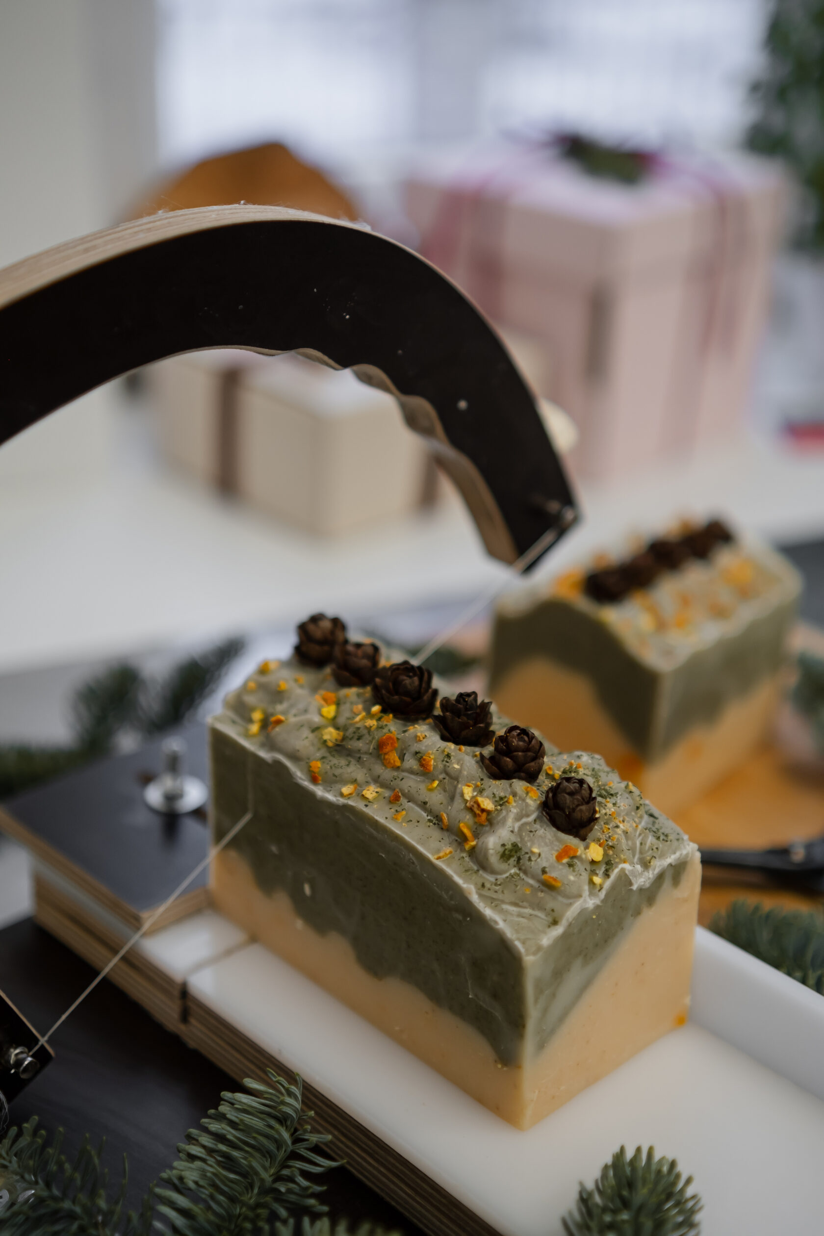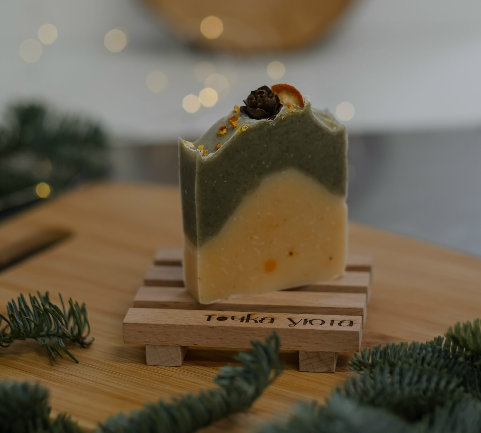 В этом мыле аромат новогодних праздников благодаря эфирному маслу пихты и апельсина. А цвет нам дарят - пудра крапивы и куркума. Украшение из шишек лиственницы, которые успели собрать перед первым снежком. Мыло Точка уюта рекомендуется использовать для всего тела и лица (если вам это подходит). Кожа будет более увлажненная, с необыкновенным ощущением настоящей чистоты. Это мыло превосходно для новогоднего подарка.